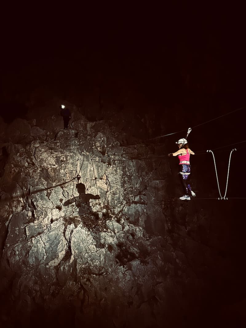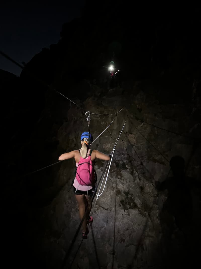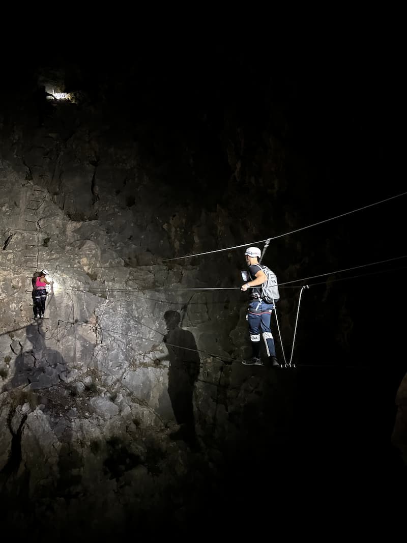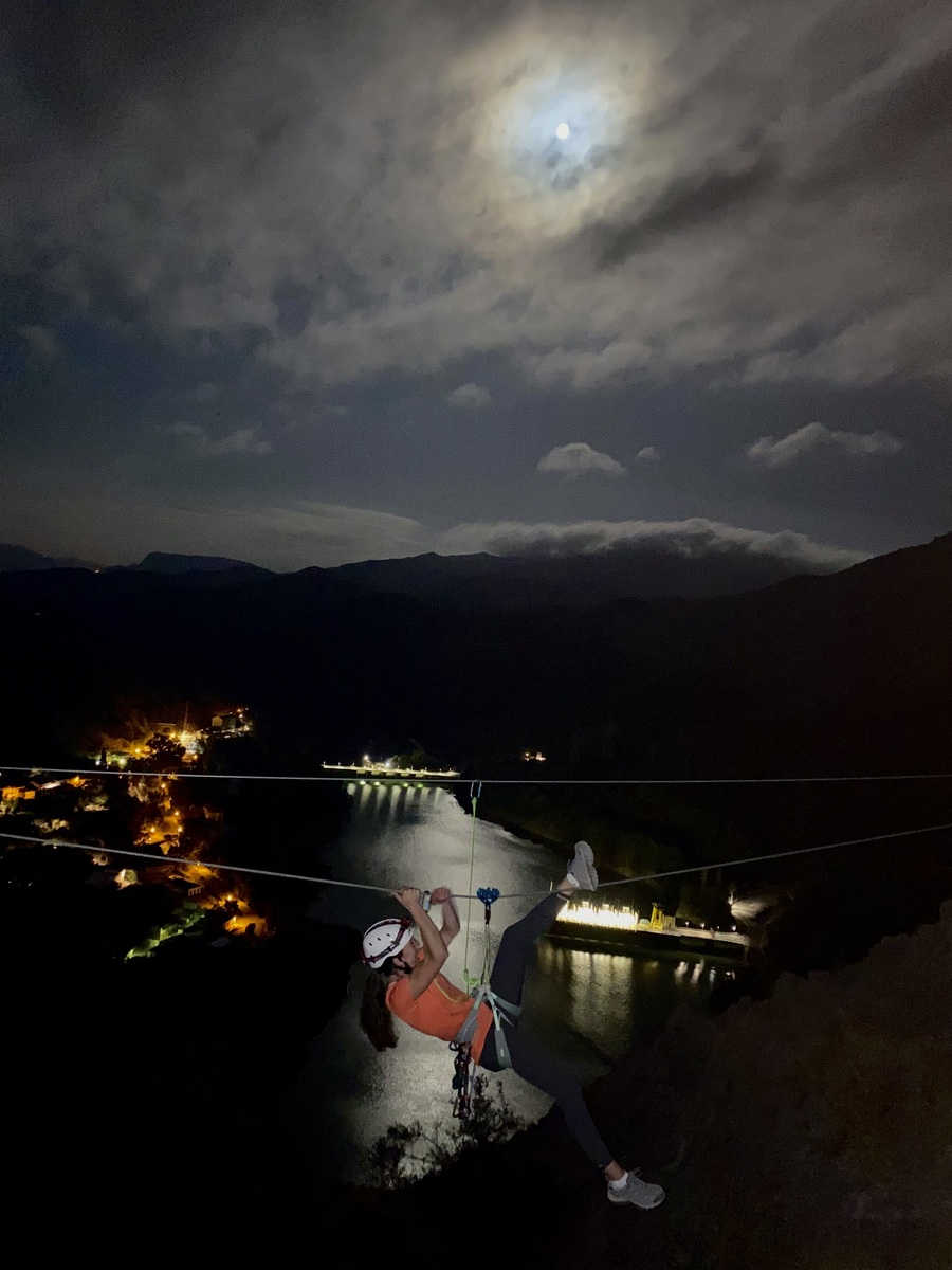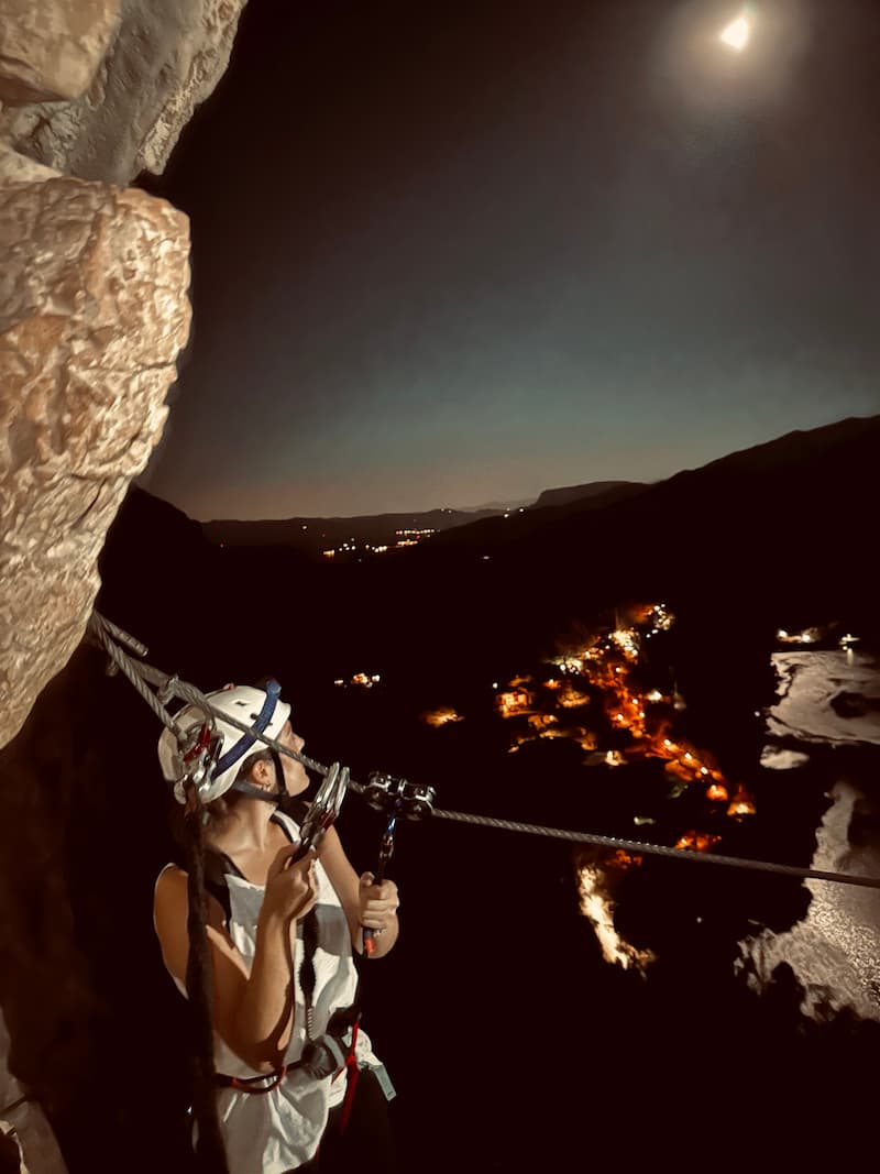 Vive una aventura nocturna recorriendo la Vía Ferrata de El Chorro. Bajo la luz de la luna, cada peldaño, el salto en la tirolina y el cruce por el puente tibetano se convierten en momentos mágicos. Desde el famoso “paso del mono”, disfruta de una vista única: el paraje natural resplandeciendo en plena oscuridad. ¡Una experiencia que no olvidarás!