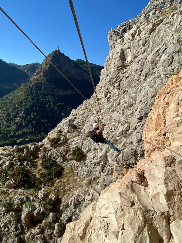 Si buscas realizar deporte de aventura cerca de El Chorro, éste es tu paquete. Salimos de La Garganta hacia la zona de escalada conocida como Los Albercones, donde daremos comienzo a la Via Ferrata. Una tirolina de 35 metros, un puente nepalí y un puente tibetano son algunos de los obstáculos a superar, siempre acompañados de monitores expertos. Y para terminar, volvemos a La Garganta, donde nos esperan unos platos tradicionales para reponer fuerzas, y las mejores vistas del restaurante.